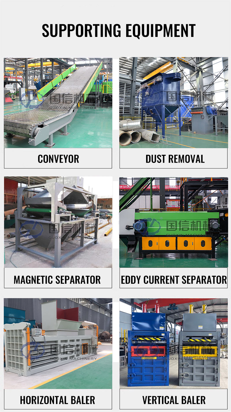 1. Mesin Penghancur: Ini adalah peralatan inti dari jalur produksi, yang terutama bertanggung jawab untuk menghancurkan limbah logam. Jenis-jenis mesin penghancur yang umum adalah: